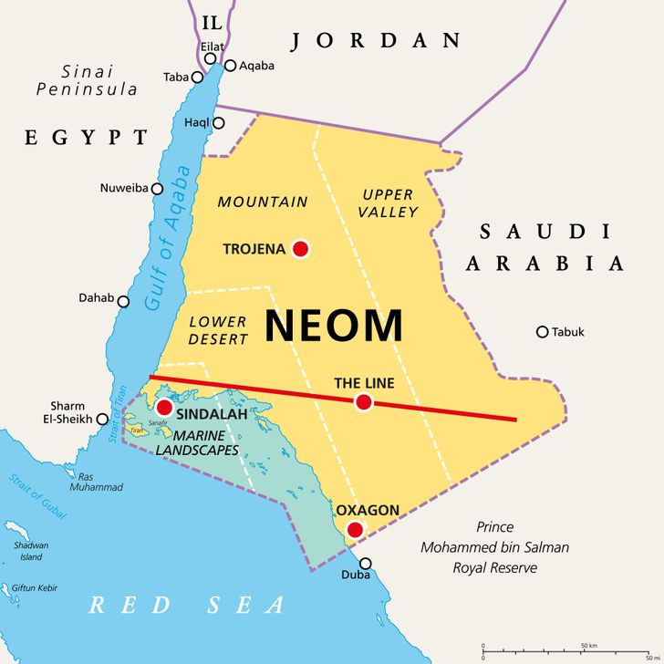 NEOM is een ambitieuze stadsontwikkeling in Saudi-Arabië, gelegen in de Tabuk-regio aan de noordelijke kust van de Rode Zee. Gelanceerd in 2017 door kroonprins Mohammed bin Salman, heeft NEOM als doel een toekomstgerichte, duurzame urbanisatie te creëren. Het combineert innovatie, technologie en toerisme. Met een geplande oppervlakte van 26.500 vierkante kilometer streeft NEOM ernaar een wereldwijde hub te worden voor luxe leven, eco-toerisme en technologiegedreven industrieën. Het project is een essentieel onderdeel van de Saudi Vision 2030. Dit plan bevordert de diversificatie van de economie van het koninkrijk en vermindert de afhankelijkheid van olie.