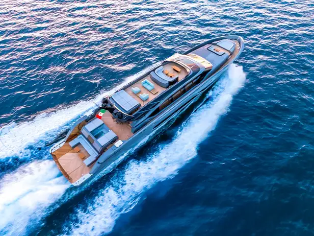 Van 29 mei tot 2 juni ligt de AB 100 te glimmen op de Venice Boat Show. Een 30 meter lang statement op het water. Stil, zonder trillingen, maar razendsnel. Deze sportieve cruiser haalt 50 knopen, of zelfs 60 in de Superfast-uitvoering. Alsof je in een privéjet over het water vliegt.
