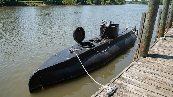 Het robuuste vaartuig is zeven meter lang en weegt in totaal vijf ton. Binnenin is de cabine ontworpen om exact twee bemanningsleden te vervoeren. Om de boot veilig te laten zinken en weer te laten stijgen, ontwierp de boer een slim systeem met ballasttanks en gebruikte hij twee ton aan massief beton als contragewicht.